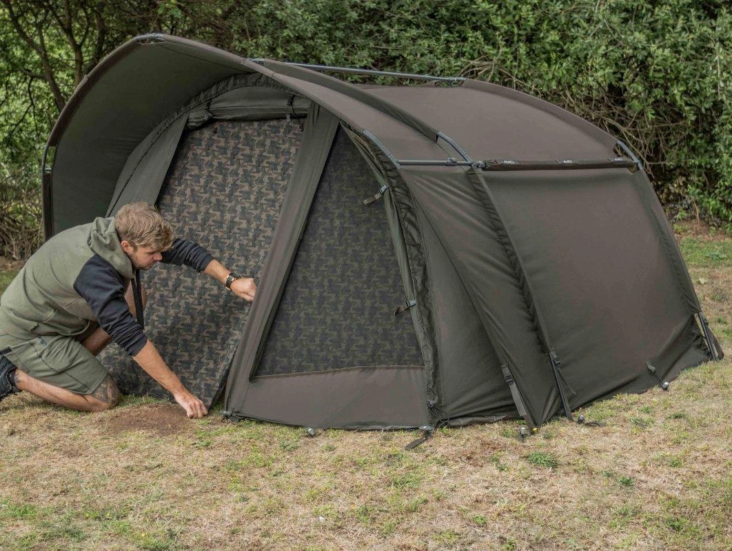 The Dual Layer System creates and internal skin which offers complete coverage inside the bivvy. This completely eradicates condensation, therefore eliminating the need for an extrenal overwrap. The Dual Layer Skin is finished in our custom camo patterm and can be left in place at all times, even when packing the bivvy away,