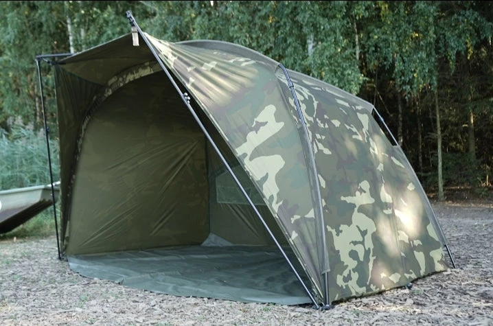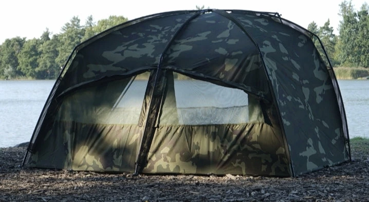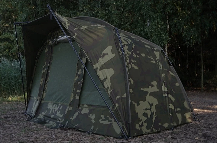 The bivvy also features a zip on/off front panel complete with mozzi side windows and fully customizable front door system. Front and rear mozzi vents with internal pockets and green/clear front door window options. Weighing in at only 9.2kg the AXS Bivvy also comes supplied with two 48” quick connect storm poles, heavy duty clip-in groundsheet, four vent spacer bars, an oversized compression style bag and heavy-duty T-pegs.