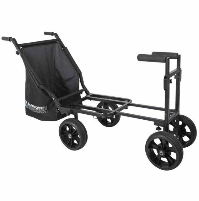The X4 MK11 barrow features an innovative extending main frame that allows extra storage when transporting all your gear to your peg. This super strong 4 wheeled barrow, features a fully welded steel frame, double brace handle with a rear storage bag, protective box support arms, and extending handles. · Extending main frame · Extending fully adjustable Handles · Rear storage bag · 4-wheel design · Compatible with most makes of seat boxes · Supplied with carrycase