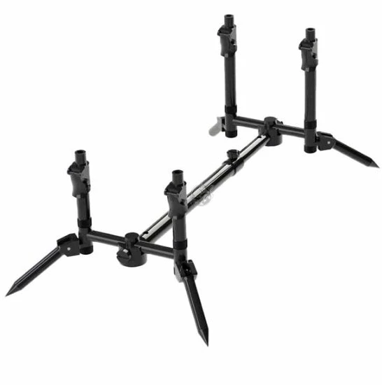 Xtractor Rod Pods allow you to convert the pod into a large variety of bankside setups, giving you options to handle almost any ground condition. You can choose from traditional T post, goalpost, H post and Y post bankstick layouts to meet your needs wherever you are. The adjustable centre bar can also be used as a stage stand for wooden platforms. The unique 2 stage angle adaptors provide multiple height options and offer a wide stance for ultimate stability. Pod deployment is quick and easy thanks to the clever carry case which has dedicated space for bite alarms and back rests.