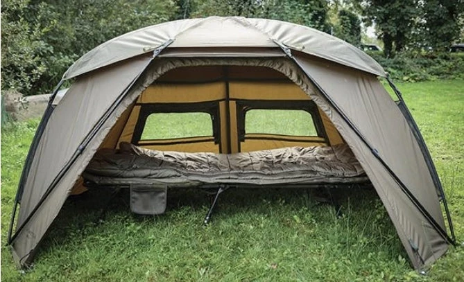 The new Xtractor bivvy offers maximum space in a minimum package. The short transport length is perfectly convenient for those who want to minimize their kit. However, this bivvy still comes complete with a host of accessories that provide unbeatable value. The bivvy features an ultra-quick set-up central fold out block and lightweight rigid aluminium frame. This is shaped for maximum internal space and protection from the elements when being used without the front panel. The included vapour cap helps to keep condensation to a minimum and will help regulate the bivvy temperature during hot conditions. This makes it an ideal choice for the angler travelling light or on quick overnight sessions.
