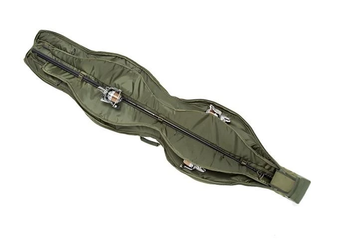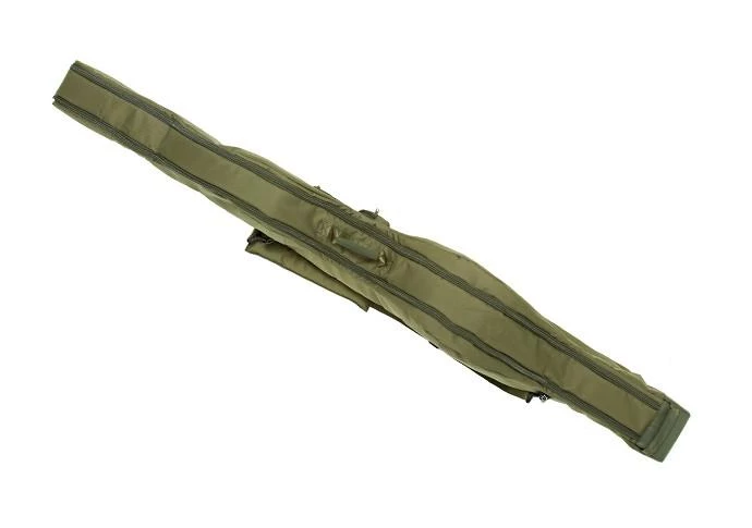 Designed to offer maximum protection while remaining compact enough to save valuable space, the NXG 3-Rod Compact Rod Sleeve 12ft is perfect for anglers who prefer to fish with a three rod set up or even for keeping your spod, marker rods and floater rod safe and protected while not in use, but without taking up too much space. Featuring two duplon carry handles and a padded shoulder strap, it makes moving your rods to your swim easy and is fitted with a variety of pockets to house banksticks, weigh slings and a pocket on the spine to store your landing net too. Inside, there is ample amounts of space to take large bit pit reels and rods which have 50mm butt rings and a padded divider to keep your rods separated and protect them while in transit, with the whole rod sleeve look superb, finished in a subtle shade of olive green.